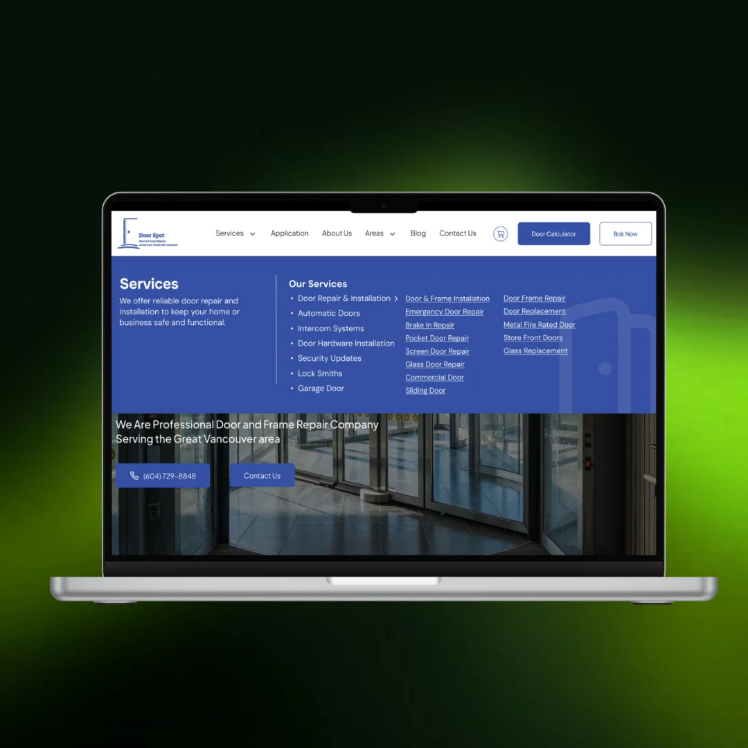 The final result was a clean, premium website that better reflects Doorspot’s professional service quality. The 50+ services were reorganized into a clear hierarchy, improving navigation and helping users find the right repair solution quickly.