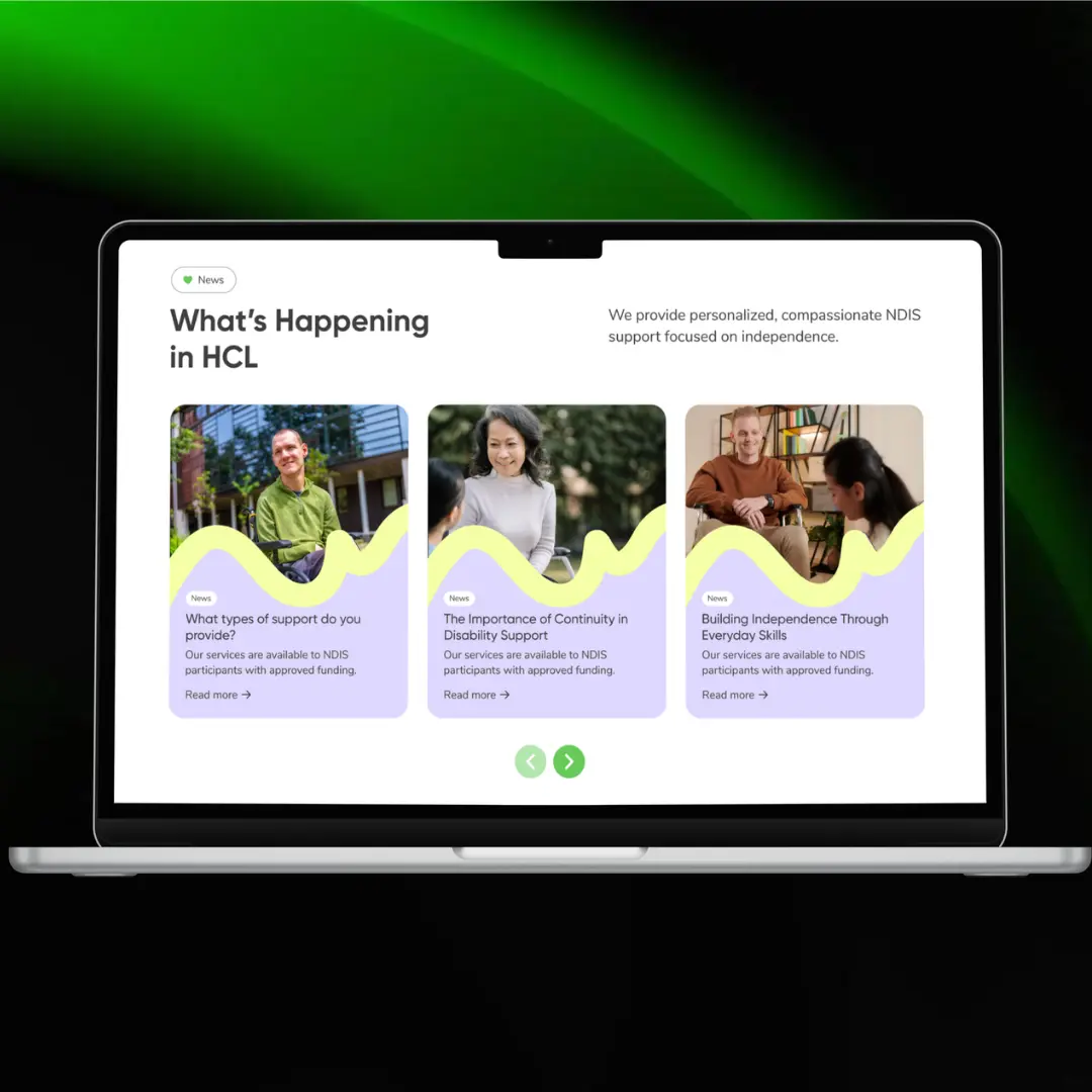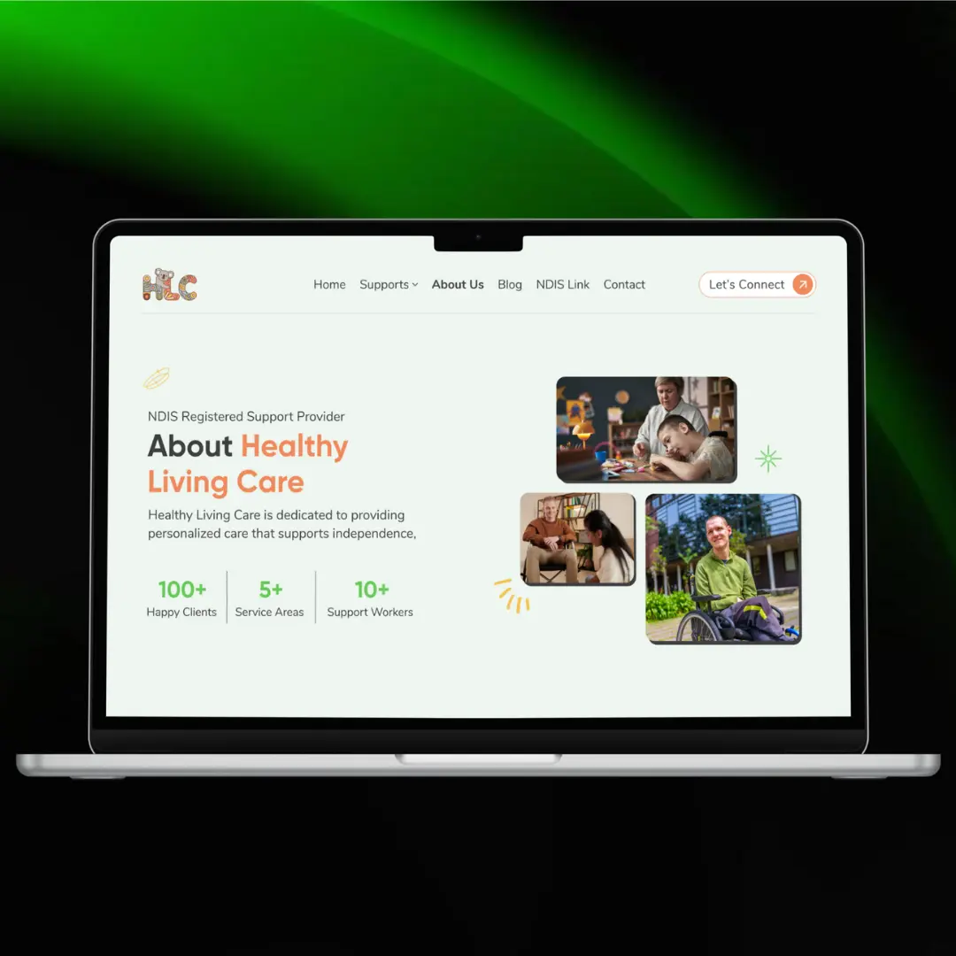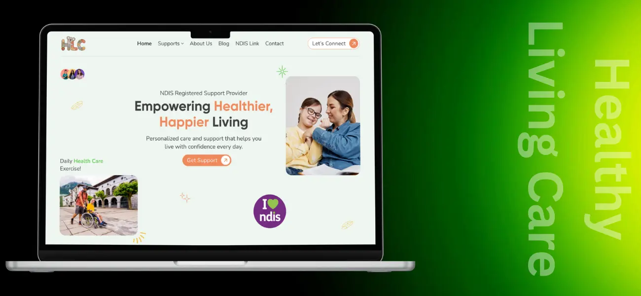 The final website successfully differentiates Healthy Living Care from traditional NDIS providers by presenting a brand that feels warm, supportive, and modern. The playful design enhances emotional connection while the structured layout ensures clarity and trust. Testimonials, FAQs, and service explanations are positioned strategically to reduce hesitation and improve enquiry intent. The brand now communicates both professionalism and compassion — strengthening credibility while remaining approachable to participants and their families.